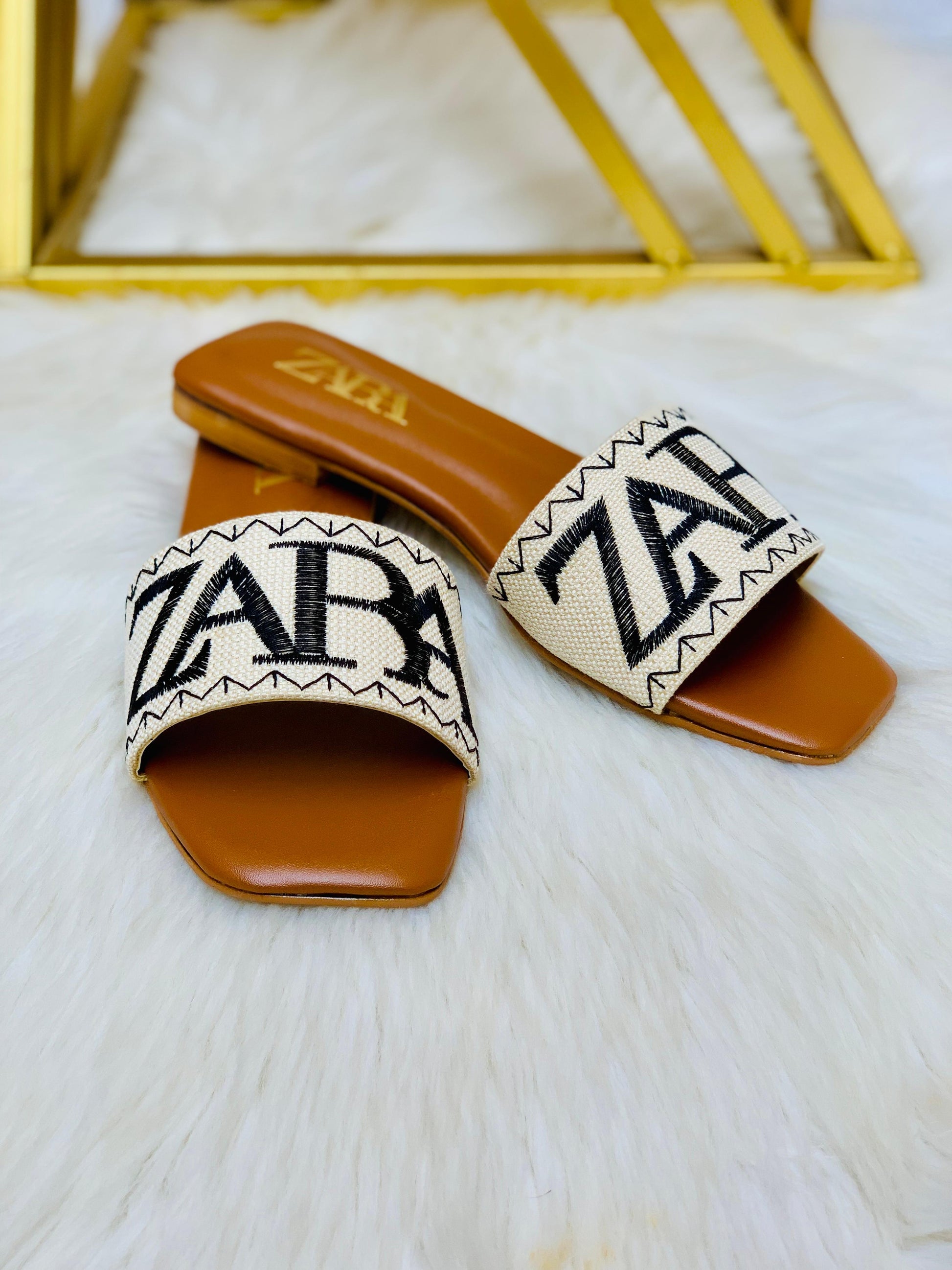ZEVIRA'S Z-A-R-A Embroidered Flats (Brown)